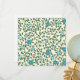 Seamless floral pattern with blue flowers, green leaves, and twisting vines on a light beige background. The design is lively and decorative.