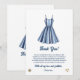 Complete your birthday stationery suite with this elegant nautical-themed thank you card. Featuring a chic blue and white striped summer dress illustration paired with classic gold compass and star accents, it is the perfect way to express your gratitude after a seaside or summer celebration. The clean, modern layout ensures your message of thanks remains the focus. All text is fully customizable to suit your specific event details.