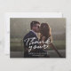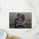 Una manera grandiosa y reflexiva de agradecer a tus amigos, familia y compañeros de trabajo que te honraron su presencia en tu día de boda con esta moderna foto gracias a las cartas con la mano de guion con "gracias" y un corazón de amor.