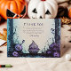 ¡Un diseño asombrosamente adorable para el gran día de tu pequeño! Esta invitación de 2º cumpleaños de inspiración gótica incluye calabazas espeluznantes, florales de época y un encanto espeluznante en tonos azules y morados. Perfecto para una celebración con temática de Halloween. Completamente editable para los detalles del evento.