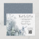Boda de invierno gracias tarjeta con bosque de nieve color agua, delicadas hojas y ciervo. Toda la redacción es editable y puede incluir un enlace de código qr a su galería de fotos (o eliminarlo, si no es necesario). El diseño tiene una paleta de colores azul polvoriento, azul pizarra, gris azul y blanco. Está personalizado con letras modernas manuscritas y una tipografía elegante clásica. Perfecto para invierno, boda de vacaciones o boda de Navidades. Por favor, navegue por mi colección de Bosques de Nieve para ver si hay elementos coincidentes o envíeme un mensaje para crear las plantillas que necesita.
