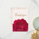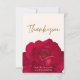La tarjeta de agradecimiento de la ducha de la novia con tema de novia en flor presenta rosas y peonías en color rojo, rosa y burdeos con patrón floral y botánico dorado. Un fondo perfecto de color dorado y blanco con arreglo floral de rosas rojas.