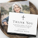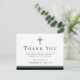 Elegante pena de muerte simpatía gracias tarjeta con color negro o personalizado Cristiano cruzando y frontera. Los colores predeterminados son negro y blanco, pero el color de fondo, el color de borde, el color cruzado, las fuentes y los colores de fuente se pueden cambiar con la herramienta de diseño. Añadir una foto personalizado en la parte posterior.