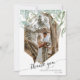 "Tarjeta de agradecimiento de foto con follaje dorado de rosa geométrico moderno simple." El follaje de hoja de eucalipto cuelga sobre la parte superior de un marco suave con brillo dorado de rosa. Una hermosa fuente de caligrafía, "gracias" y sus nombres con la fecha de su boda (u otra información) se personalizan fácilmente. En el reverso hay el mismo follaje de hoja y un fondo de madera de cabaña blanca suave que le permite escribir a mano su mensaje personal. Arte pintado y diseñado gráficamente por la artista y diseñadora licenciada internacionalmente, Audrey Jeanne Roberts, derechos de autor.