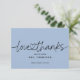 Simple tarjeta de agradecimiento de boda con letra moderna minimalista que dice "gracias" con un corazón que conecta las palabras. Personalice o elimine el texto para un mensaje manuscrito en el reverso.
