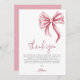 Tarjeta de agradecimiento minimalista y elegante con arco rosa para despedida de soltera con un hermoso lazo rosa y tipografía manuscrita. Ilustrado y diseñado por Patricia Alvarez.