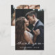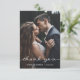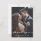 Esta elegante tarjeta de agradecimiento nupcial es moderna y minimalista, pero también tiene un ambiente vintage encantador. El guion de caligrafía blanca de moda decora la parte delantera, junto con tu foto boda favorita, y una foto adicional pasa al fondo con tu propio mensaje personal a tus invitados.