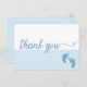 "Pieecitos": Tarjeta de agradecimiento simple y moderna con letra azul para baby shower de niño