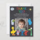 ¡Muestra tu gratitud con la ayuda de tus amigos favoritos de Plaza Sésamo! Esta alegre tarjeta de agradecimiento incluye un divertido diseño de pizarra con personajes icónicos como Elmo, Cookie Monster y Big Bird. Es una manera maravillosa de agradecerte por los regalos y, más importante, por celebrar un día tan especial. Con un lugar para agregar una foto atesorada, esta tarjeta es un recuerdo memorable para todos los que asistieron al gran día de tu pequeña.