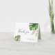Tarjeta de agradecimiento Baby Shower Neutral de género de la hoja de vegetación tropical moderna con colores verde y blanco con fondo verde pastel y diseño minimalista y sencillo. El diseño tropical acuático es la mejor manera de invitar a los huéspedes a un Baby Shower Cute neutral en cuanto a género. Disponible para productos de coincidencia, también puedes pedirme en masaje un artículo necesario que pueda crear para ti.