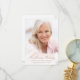 Gracias a tu familia y amigos por asistir al funeral de tu ser querido y/o sus amables notas de solidaridad con esta simple pero elegante foto personalizada tarjeta de agradecimiento. Esta plantilla de diseño minimalista presenta una foto en la parte delantera con una superposición translúcida para las palabras "En memoria amorosa" en un falso guión de oro rosa con nombre y fechas para personalizar. La parte posterior de la tarjeta tiene su personalizado agradecido mensaje, firma y cita acentuados por un delicado divisor floral. Diseñado por la artista ©Susan Coffey.