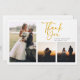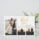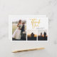 Una manera grandiosa y reflexiva de agradecer a tus amigos, familia y compañeros de trabajo que te honraron su presencia en tu día de boda con esta moderna foto tarjetas de agradecimiento con el efecto oro con letras de guion "gracias" Fotos en la parte delantera y en la inversa de esta carta