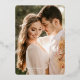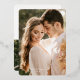 Esta carta de agradecimiento sencilla y moderna de boda de Relieve metalizado dorado es perfecta para agradecer a los huéspedes bodas. El estilo minimalista incluye una foto de la novia y el novio en el frente con las palabras "gracias" en un guion con Relieve metalizado oro real. La parte trasera tiene espacio para el mensaje de su personalizado y una segunda foto.