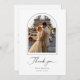 Say thank you with a card that feels personal and simple. Add your favorite photo, framed in a soft arch, and write a note on the back to let friends and family know how much it meant to have them with you on your wedding day.