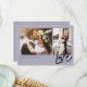 Agradece a tus invitados de boda con nuestra moderna y minimalista tarjeta de agradecimiento de boda con dos fotos en color malva. El diseño presenta un diseño de dos fotos en la parte frontal con "Amor" mostrado en una escritura moderna. La parte posterior presenta una imagen de hojas con un corazón rojo en el medio y personalizada con tu propio mensaje de agradecimiento.