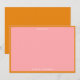 This modern wedding bridal shower flat thank you note card for the bride and groom features a minimalist aesthetic and a fun color palette of pink and orange.