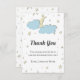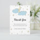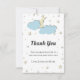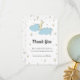 Cuidada y simple ducha blanca de bebé, tarjeta de agradecimiento con una noche estrellada y luna amarilla detrás de algunas nubes azules. El ilustracion está hecho de tal manera que se ve en tres dimensiones, pero ten en cuenta que es sólo un efecto y que en realidad es una impresión. Todo el texto está en gris y se puede personalizar. Ilustrado y diseñado por Patricia Álvarez.