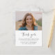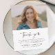 Una tarjeta de agradecimiento simple para funeral con foto conmemorativa que incluye un agradecimiento escrito a mano y tipografía minimalista. Haga clic en el botón de edición para personalizar fácilmente esta plantilla de agradecimiento con sus propios detalles y fotografía de su ser querido.