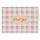 Una carta de agradecimiento rosa y amarillo pastel de gingham. Cambiar fácilmente el mensaje en el frente y en el interior.