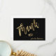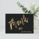 Crea una tarjeta plana de agradecimiento personalizada y espléndida, moda, minimalista y sencilla para tu próximo boda. Esta tarjeta plana de agradecimiento incluye un guión amplio y hermoso de caligrafía escrito con letras falsas de Relieve metalizado dorado con fondo negro de pizarra. Puede personalizar fácilmente con su propio texto y personalizar a su gusto. Nota: La obra de arte "Gracias -" no puede ser editada. Nota adicional: La impresión en Relieve metalizado dorado es un falso efecto de Relieve metalizado dorado. NO es el verdadero Relieve metalizado de oro de sellado caliente.