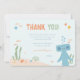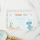 This sweet thank you card design features the lovable Slumberkins Hammerhead character in a calm, ocean-inspired setting that feels playful, heartfelt, and perfectly suited for young children. Soft pastel blues create a soothing background, while warm peach sand tones and muted green sea plants add warmth and balance. Small fish, bubbles, shells, and starfish gently frame the message, creating a whimsical underwater scene that feels cohesive and inviting. The cheerful “Thank You!” headline paired with a personalized sign-off makes the design feel thoughtful and special. Perfect for toddler and early childhood birthday celebrations, this design beautifully coordinates with an ocean- or shark-themed party while keeping a cozy Slumberkins-inspired vibe.