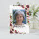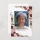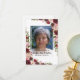 La nota de agradecimiento funeral en una tarjeta de invitación plana es una manera sencilla de agradecer a los que mostraron su comodidad durante su tiempo de duelo. Esta tarjeta presenta un fondo blanco que se puede cambiar a cualquier color, flores rosa y borgoñona de color, una foto de tu ser querido y un mensaje de agradecimiento personalizado.