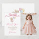Some Bunny Girl Pink is Turning One Birthday Photo Thank You Card