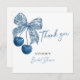 Share your appreciation with timeless elegance using this Something Blue Theme Blue Bow Bridal Shower Thank You Card. Featuring a classic blue and white color palette, this design showcases a delicate blue bow illustration paired with refined, minimalist typography for a soft and graceful look. Perfectly suited for a “Something Blue” themed bridal shower, this thank you card complements classic, elegant, and vintage-inspired bridal celebrations.