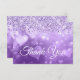 Falsos bordes superiores purpurinas brillantes de color púrpura, emparejados con un gradiente de puntos y corazones bokeh. Toda la textura brillante, brillante y purpurinoso se crea con una imagen gráfica digital impresa. El estilo de fuente y el color se pueden personalizar. Personalizar de crear sus propias tarjetas de agradecimiento planas después de la fiesta de cumpleaños 16 de su hija. Enclavado en la tabla de degradado Lilac Purple Heart.
