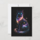 A luminous cosmic cat formed of stardust and nebulae sits against the void, its glowing eyes suggesting ancient mystery and celestial power.