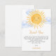 This cute baby shower thank you card features a yellow watercolor sun, clouds, and stylish typography. Easily customizable. Original Watercolor © Michele Davies.