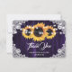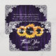 Tarjeta De Agradecimiento Sunflower Purple Rustic Wood Floral Lace Wedding