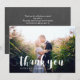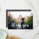Tarjeta de agradecimiento con una fuente manuscrita bonita en blanco sobre la foto que elijas. La parte trasera tiene un fondo de pizarra con fuentes que coinciden.