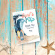 Haga que sus invitados sepan que aprecia que celebren su cumpleaños con usted enviándoles estas tarjetas de agradecimiento con tema de surf que presentan una gran ola de acuarela, tablas de surf y estrellas de mar en la playa con tipografía "Surf's Up" en letras retro.