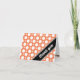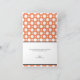 Tarjetas de agradecimiento con un patrón de lunares surtidos con círculos blancos de tamaños alternados sobre un naranja estilo café. "gracias" está impreso en diagonal en blanco en la parte frontal sobre una franja negra diagonal en la esquina inferior derecha. El interior está impreso personalizado con su propio texto, o puede dejarse en blanco fácilmente escribiendo a mano sus propios sentimientos de agradecimiento. Alrededor de esta área de texto de plantilla está el mismo patrón de lunares surtidos, un elemento único en lugar del típico interior blanco. Este estilo y esquema de colores hacen que estas tarjetas sean una opción adecuada para despedidas de soltera, baby showers y cumpleaños.