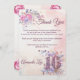 Nota de agradecimiento Sweet Sixteen, envía un agradecimiento personalizado a tus familiares y amigos. Agrega tu foto y cambia el texto (color, estilo de fuente, tamaño y posición) haciendo clic en el botón "PERSONALIZAR". Esta hermosa tarjeta de agradecimiento también se puede utilizar como plantilla digital. ¡No se necesitan habilidades de diseño!