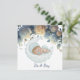 Sweet dreams sleeping baby boy Thank You Card perfect for welcoming your little prince. This design features a delicate watercolor illustration of a baby boy resting on a soft, fluffy cloud, framed by a lush arrangement of midnight blue and champagne gold roses.