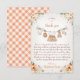 Prepare to celebrate the upcoming arrival of your little pumpkin with our Sweet Little Pumpkin Autumn Baby Shower thank you card. This delightful design features beautiful orange and cream watercolor baby clothes hanging on a clothesline, along with charming florals and pumpkins. It captures the essence of fall while expressing the joy of welcoming a new baby. This thank you card is the perfect way to set the tone for your autumn-themed baby shower and is available in multiple colors to suit your preferences. Customization is easy! Check out the matching set in our store.