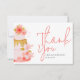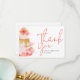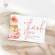 This sweet modern thank you card is designed for a girl’s birthday party. The card features a soft pink floral cake illustration on one side. Elegant script typography highlights the “Thank You” message. The design feels gentle, warm, and joyful. Light pastel colors create a clean and modern look.
