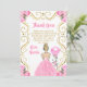 This sweet sixteen thank you card features an elegant gold frame, a beautiful princess with blonde hair and a pink dress, flowers and a balloon. This is perfect for a sweet sixteen birthday party.