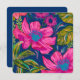 Esta tarjeta de agradecimiento de ducha de novia floral y botánica presenta flores de acuarela en rosa, púrpura y color melocotón y hojas en tonos brillantes de verde con rosa intenso en el fondo. Una invitación de boda floral colorida perfecta