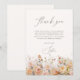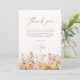 Tarjeta de agradecimiento floral en acuarela rosa y beige con elegante caligrafía.