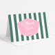 El rosa y verde preppy se unen al estilo retro de los años 50 con este diseño de tarjeta de agradecimiento para ducha de boda o baby shower plegable, que recuerda al clásico diseño de palm beach. Todos los colores (rayas, forma de fondo de los años 50, colores de fuente) pueden ser editados por usted desde dentro de la herramienta de diseño.