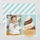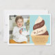 Diseñadas para coincidir con nuestras invitaciones a fiestas de cumpleaños infantiles de helado suave, estas tarjetas de agradecimiento lindas presentan un cono de helado suave de chocolate y vainilla con "gracias" y una firma en letra de estilo retro vintage lindo. Personalice con una foto de la fiesta de cumpleaños y un mensaje preimpreso.