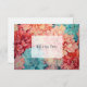 Tarjeta de agradecimiento de boda de primavera floral teal, coral y champán. Ideal para una boda de jardín de primavera.