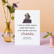 La encantadora obra de Shakespeare "Doceth Night" incluye esta hermosa cita: "No puedo dar otra respuesta más que gracias, y gracias, y siempre gracias". Las palabras de Shakespeare son perfectas para cualquier momento que quieras expresar gratitud. ¿Quién puede decirlo mejor que Shakespeare? ¿Por qué lo intentamos? El mensaje aparece en la tipografía vintage, elegida y arreglada con cariño por mí. (Soy un fan de Shakespeare — ¿lo pueden decir?) Su mensaje personal va por dentro con un elegante y tradicional tipo de letra.