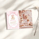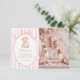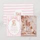 Tarjeta De Agradecimiento Teddy Bear Girls Pink Bow Stripes 1st Birthday
