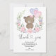 Tarjeta De Agradecimiento Teddy Bear Pink Morple Globos Florales Bebé