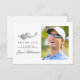 Una hermosa y elegante tarjeta de agradecimiento diseñada especialmente para los 30 años. Cuenta con un gráfico de accesorios de golf compuesto por un club de golf, una pelota de golf, un gorra y un campo de golf. Tres líneas permiten un agradecimiento personalizado y el nombre del celebrante de cumpleaños. También hay espacio para una gran foto.