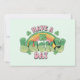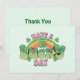 Tarjeta de agradecimiento con una imagen temática del Día de San Patricio. Un diseño de estilo retro grunge que dice: "Que tengas suerte. Con un arcoiris colorido detrás. Palabras escritas en un ambiente retro redondeado y gordo. Colores rosa y verde.